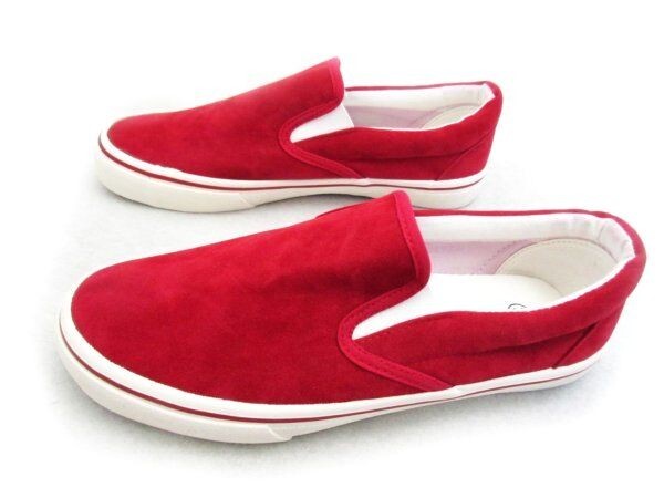 - [送料無料]Q793新品スウェード/スリッポンスニーカー27㌢RED♂
