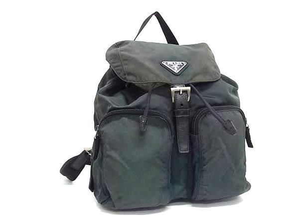 > 1円 PRADA プラダ テスートナイロン リュックサック バックパック デイパック メンズ レディース ダークグリーン系 GB2199