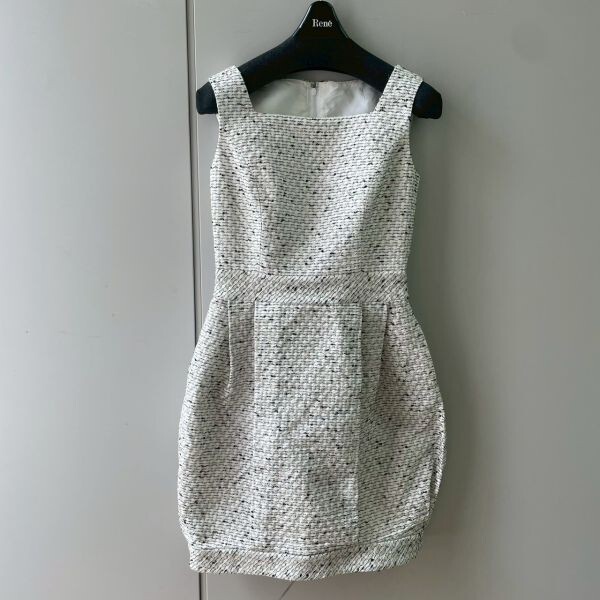 - H722-O15-8608 Rene ルネ TISSUE ノースリーブ ワンピース 32サイズ 6416120 ワンピース ホワイト系 日本製 レディース ハンガー付き OA