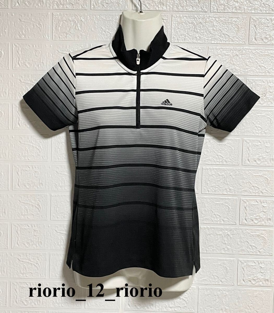 - 750 adidas アディダス テーラーメイドゴルフ ゴルフシャツ 半袖ハーフジップポロシャツ グラデーションボーダー柄 sizeM