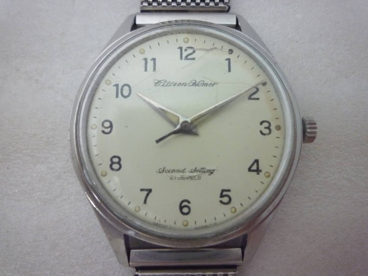 > 同梱可 ☆旧国鉄腕時計☆ Citizen Homer シチズンホーマー 昭和45年 金局腕968 国鉄 刻印有 手巻き式 3針 21石 ベルト付き(壊れ有) 作動品