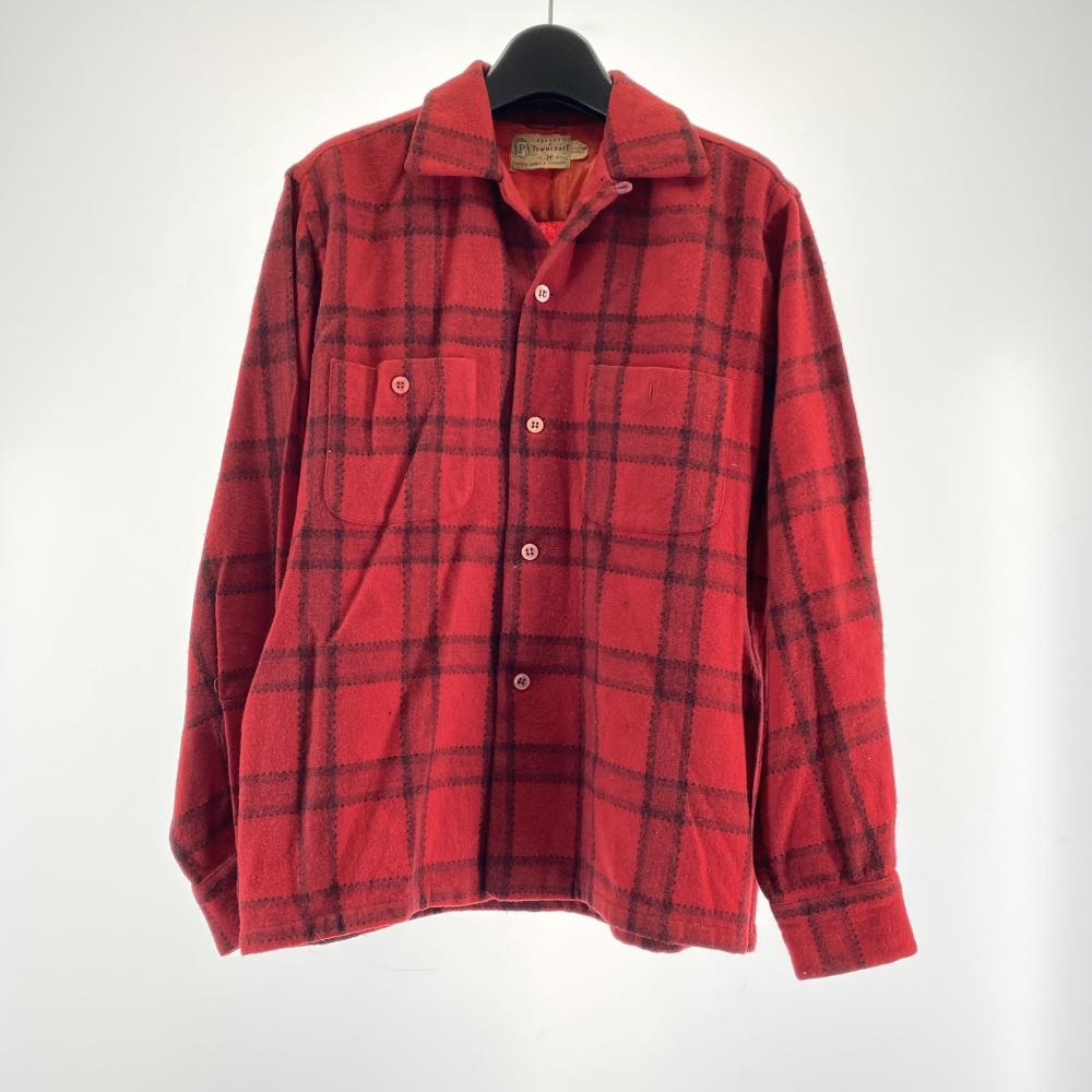 - 【中古】50s TOWNCRAFT Pタグ オープンカラー ネルシャツ サイズM レッド 左胸ポケットボタン欠品 タウンクラフト[240017728646]
