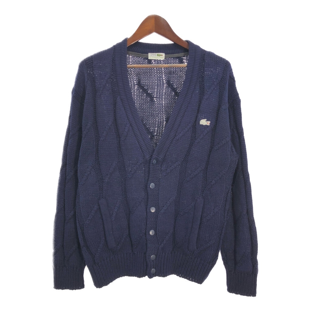 - 80年代 スペイン製 CHEMISE LACOSTE シュミーズ ラコステ アクリル ニット カーディガン ネイビー (メンズ L相当) T0464 1円スタート