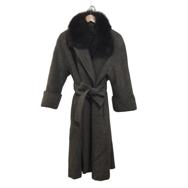 > レリアン Leilian サイズ9 M - ダークブラウン×ベージュ レディース 長袖/ファー/秋/冬 コート