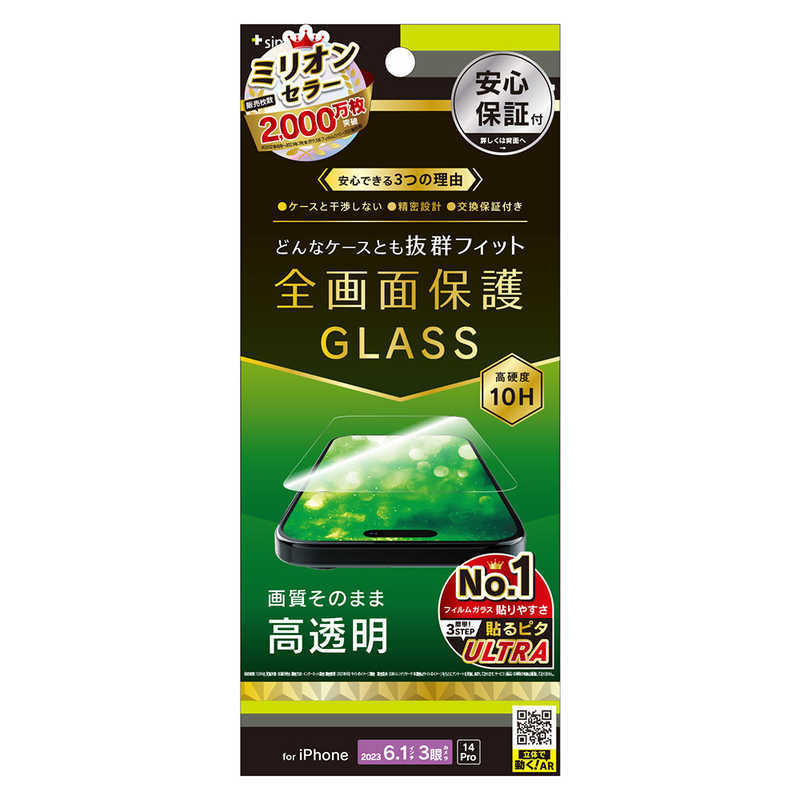 > トリニティ iPhone15 Pro 6.1インチ ケースとの相性抜群 高透明 画面保護強化ガラス TR-IP23M3-GLS-CC