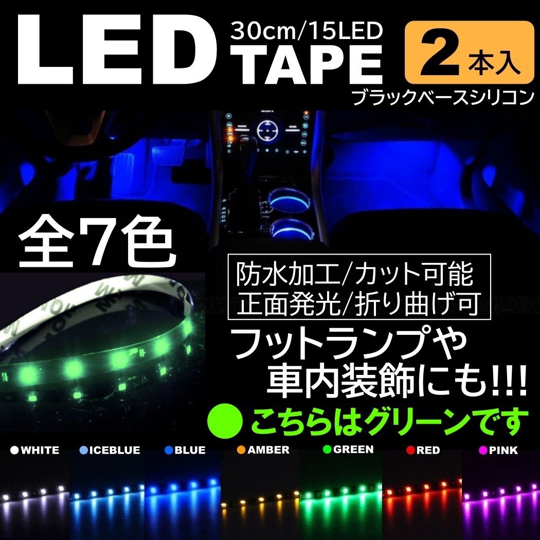 > グリーン 2本 LEDテープ 15LED 30cm 正面発光 LEDテープ 黒ベース 防水 切断可能 折り曲げ可能 シリコンチューブ