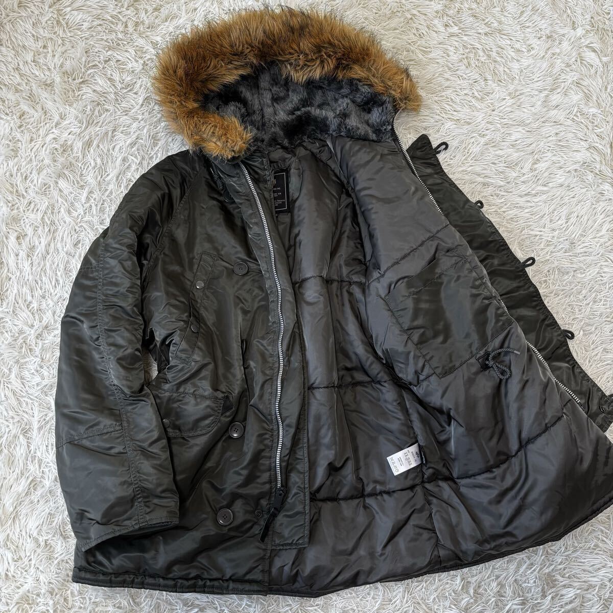 > 未使用◎稀少XL◎アルファインダストリーズ『超肉厚防寒★極暖の1着』ALPHA INDUSTRIES ダウンコート N-3B 2way カーキ フード 中綿 秋冬
