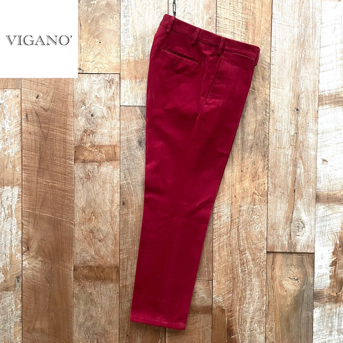 - 【新品未使用】VIGANO ビガーノ テーパード コットン スラックス パンツ 44 レッド ストラスブルゴ取扱
