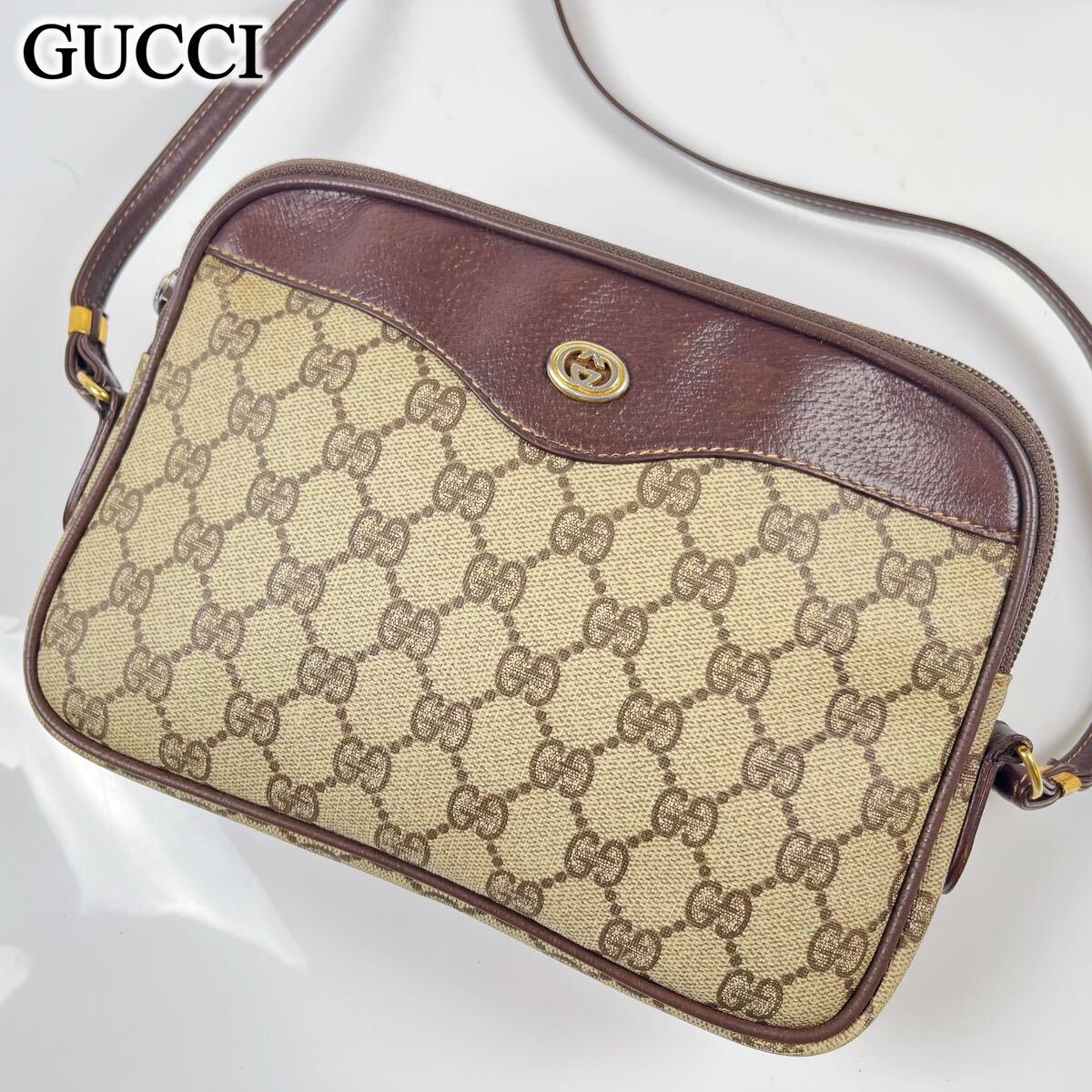 - 1円1スタ GUCCI グッチ ショルダーバッグ レザー PVC インターロッキング GG柄 GG オールドグッチ GGスプリーム ミニショルダー ブラウン