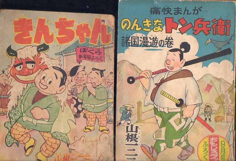- おもしろブックふろく のんきなトン兵衛 S30.9 ぼくら付録 きんちゃん S34.1 山根一二三