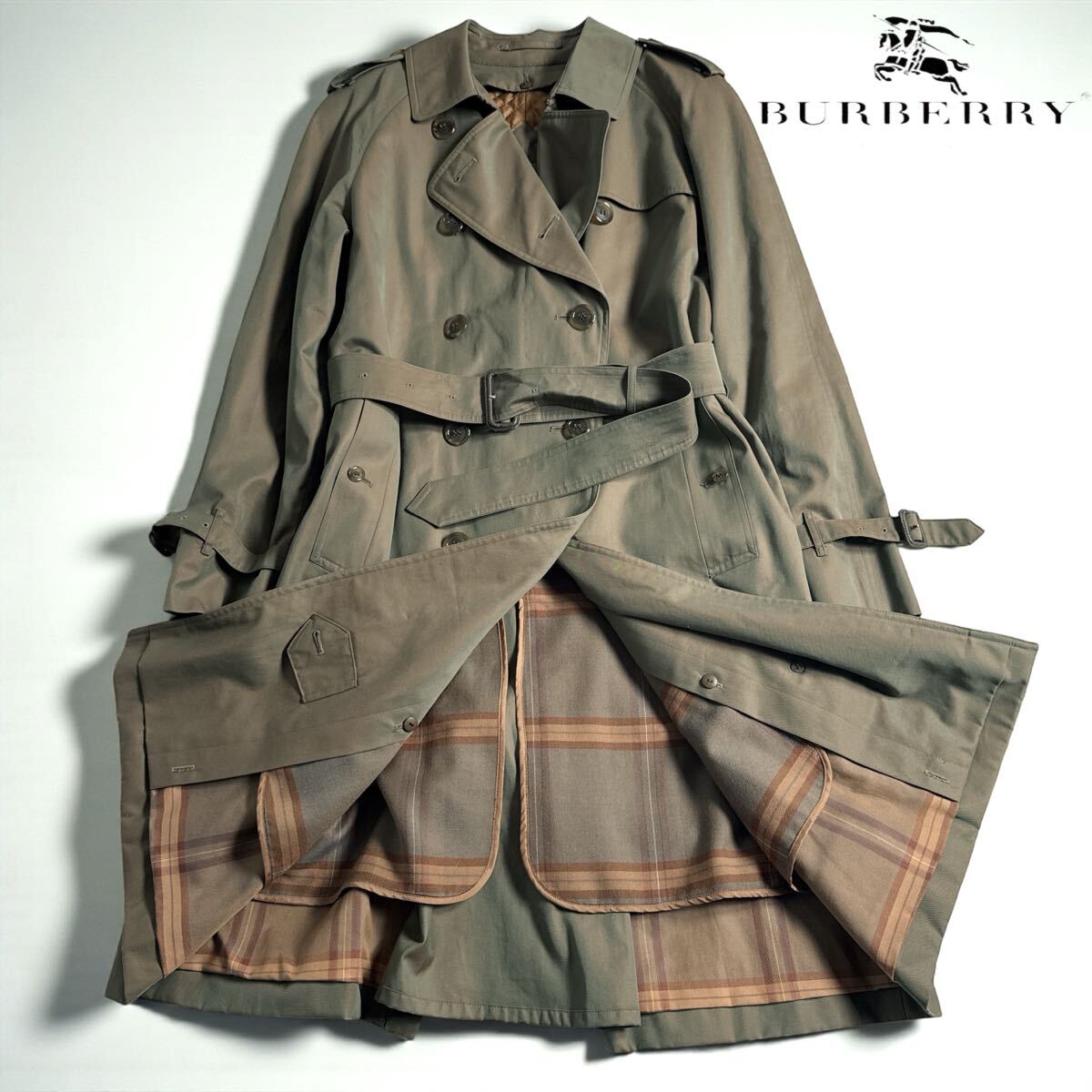 > 1円〜★ Burberry バーバリー 玉蟲色 トレンチコート レディース9号 ライナー付き ノバチェック 極美品 ヴィンテージ オールドバーバリー