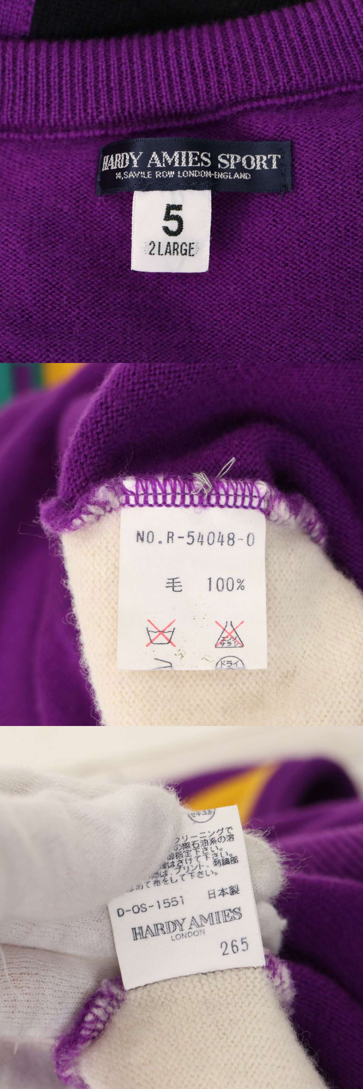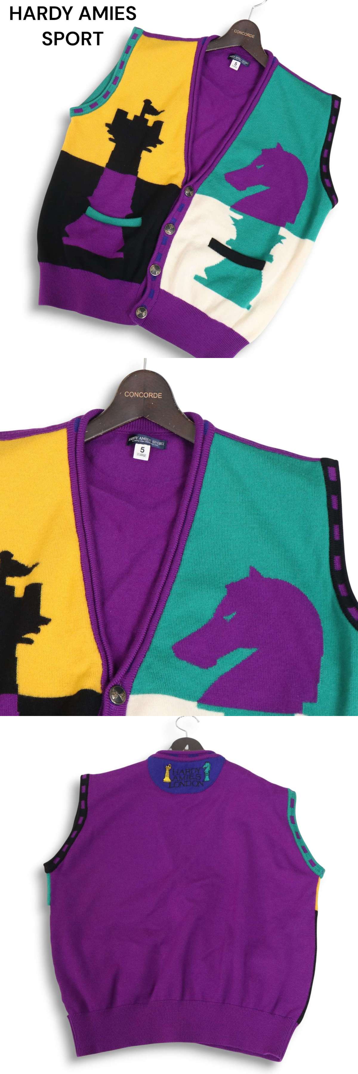- HARDY AMIES SPORT ハーディエイミス 秋冬 チェス駒 シルエット★ カラーブロック ウール ニット ベスト Sz.5 メンズ
