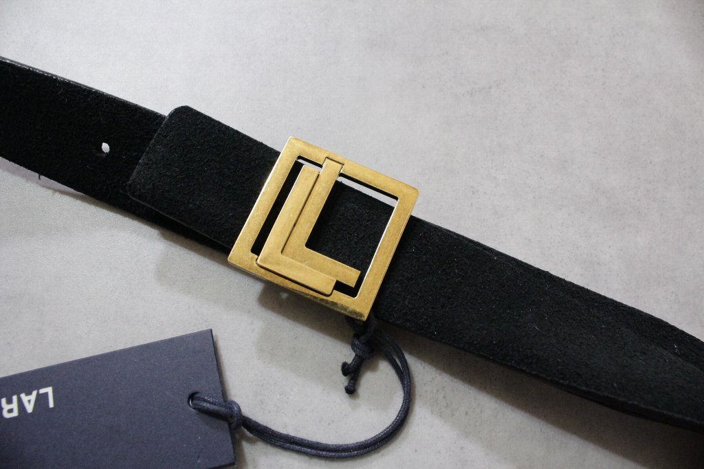 - LARDINI★新品 ラルディーニの「L」をロゴデザインしたバックルのベルト 100cm ブラックスウェード 巾着ケース付