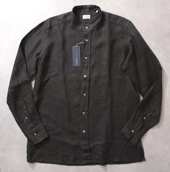 - BAGUTTA★新品3.2万円程度 バグッタ ウォッシュドリネン素材の変則スタンドカラーシャツ「MYKONOS」ブラック無地 42cm