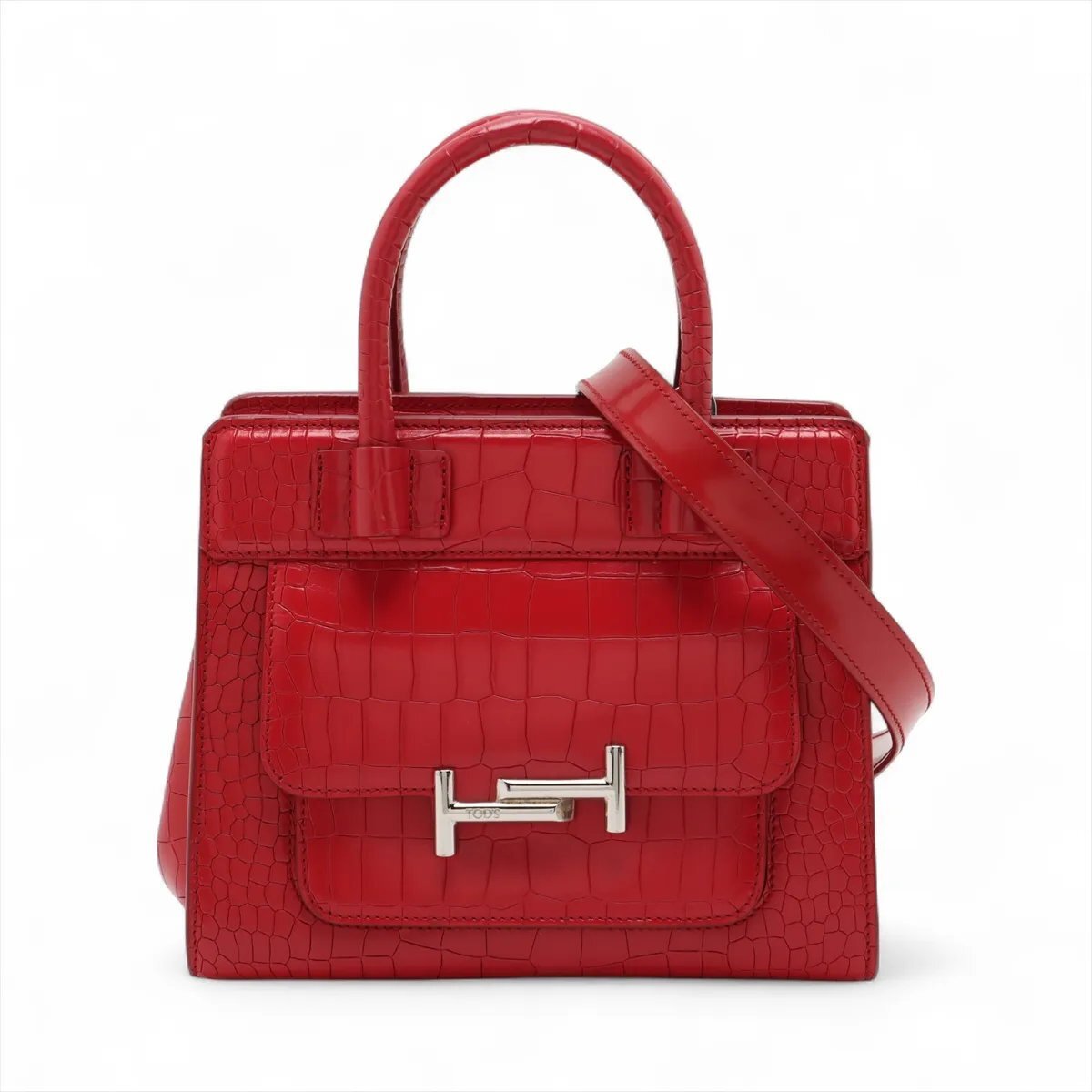 - 1円■新品同様■トッズ ダブルT クロコダイル エンボス レザー 2WAY ハンドバッグ 斜め掛け ショルダー トート 本革 レディース EME CW62-4