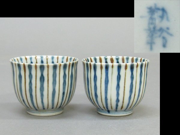 - 【心庵】九谷焼 須田菁華 麦藁手/ぐい呑 2客 付箱 A713