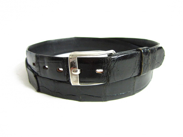 - ビンテージ/クロコダイル型押し/細ベルト/レザーベルト/黒【W37~39インチ】ナローベルト/フックベルト/大きいサイズ/D142-51-0038ZV