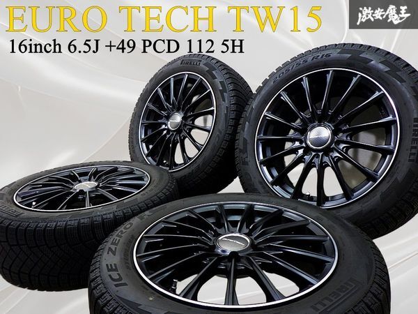 > ★キレイ★ EURO TECH ユーロテック TW15 16インチ 6.5J +49 PCD 112 5H スタッドレスタイヤ 付 ホイール 4本 Benz Aクラス Bクラス 棚47B
