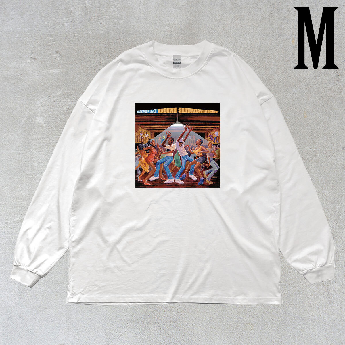 > キャンプ・ロー Camp Lo アップタウン サタデーナイト Uptown Saturday Night イラストプリント リブ付き 長袖 Tシャツ ロンT 綿100% WH M