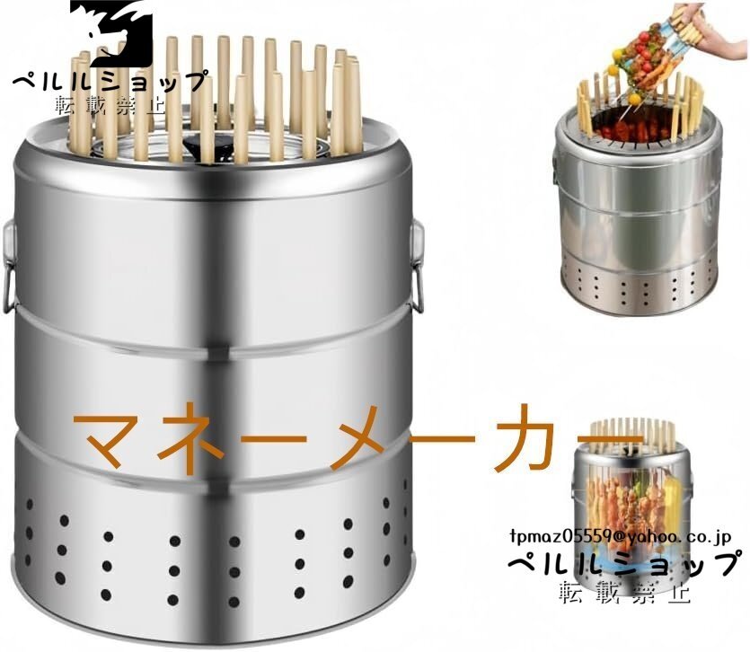 - ハンギンググリル 串焼き 炭焼きグリル 樽型 BBQ 蓋付き チャコールケバブグリル ドラム型無煙バーベキューグリル34.5 x 34.5 x 37.5 cm