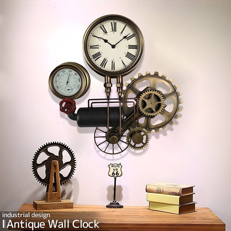 - ウォールクロック 壁掛け時計 水道管 アンティーク インダストリアル レトロ ヴィンテージ 男前 おしゃれ 歯車 スチームパンク BT-101