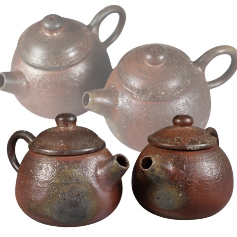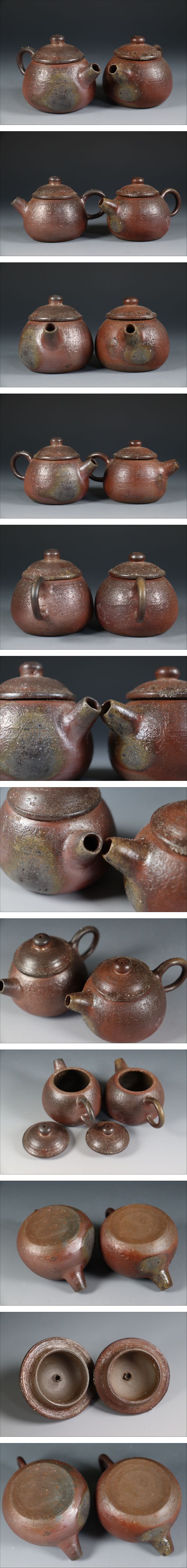 - 蔵出し品 備前焼 古作家造 般若心経彫 後手急須 一対 煎茶道具