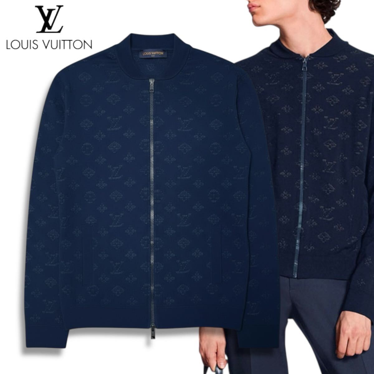 > 59 美品 国内正規品 LOUIS VUITTON ルイヴィトン 20AW PM202Q TBU HIN50W ドロップニードル モノグラム ニット ジャケット ブルゾン XXL