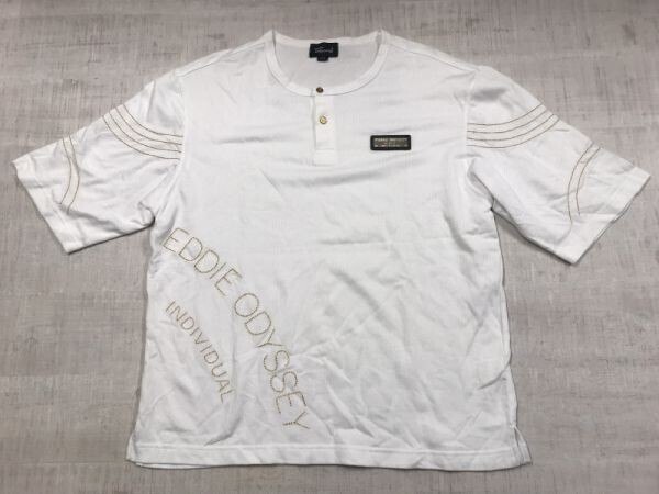 > Eddie Odyssey エディオデッセイ 悪党 ヤンキー アウトロー お兄系 チンピラ 刺繍 五分袖Tシャツ カットソー メンズ ヘンリーネック L 白