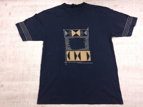 > CHRISTIAN AUJARD HOMME クリスチャンオジャール 刺繍 ステッチ デザイン エスニック 半袖Tシャツ メンズ 88~96 紺