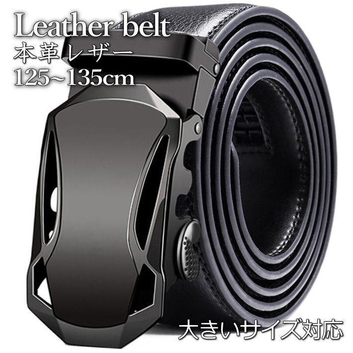 - 125~135cm 大きいサイズ ビジネスベルト カジュアルベルト メンズ 本革 レザー サイズ調整可能 7988393 E ブラック 新品 1円 スタート
