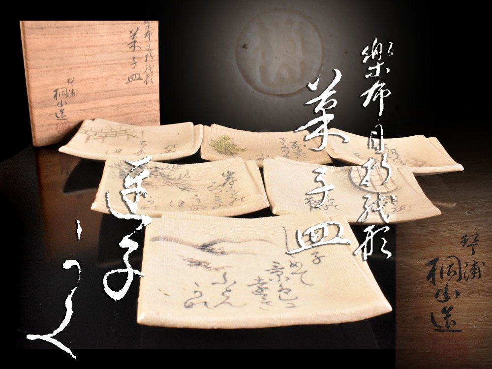 > 【雲】某収集家放出品 楽焼 琴浦窯 和田桐山 布目色紙形皿 菓子皿 銘々皿 6客 在銘 共箱 古美術品(懐石料理道具)Y7162 OTvcfr