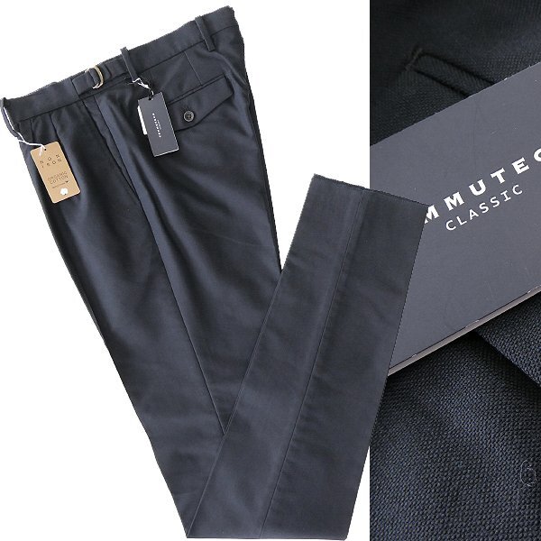 - 新品 スーツカンパニー NON IRON 2プリーツ テーパード パンツ S 紺 【P33256】 COMMUTECH メンズ スラックス トラウザーズ タック