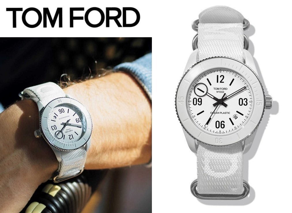 > ●35万新品◆TOMFORD トムフォード 自動巻腕時計 OCEAN PLASTIC SPORT N.002 ホワイトダイヤル テキスタイルベルト白 1円
