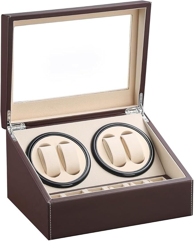 - 【特価】ワインディングマシーン(4本巻き+6本収納) 自動巻きワインディングマシーン 日本製 マブチモーターブラウン レザー