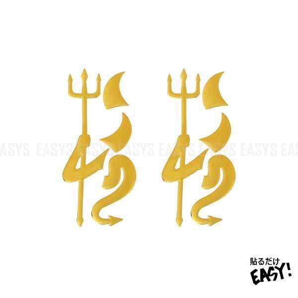 > 送料無料 悪魔 デビル ステッカー 【ゴールド】 2枚セット 3D 立体 カスタム ステッカー 車 汎用 純正エンブレム加工用 イメチェン 簡単