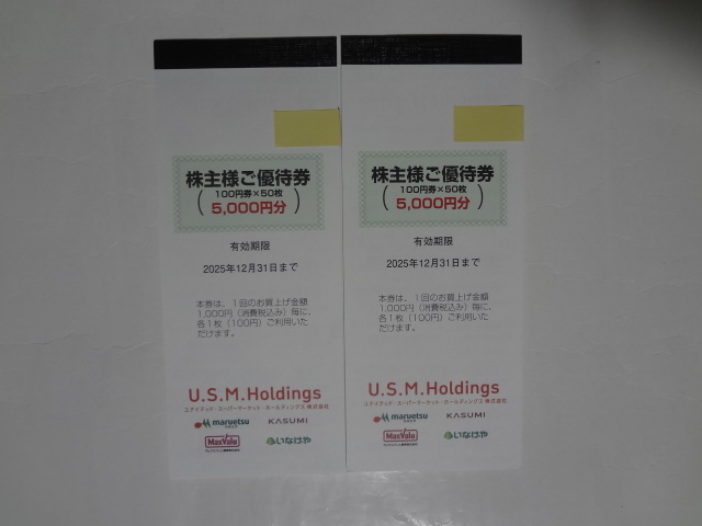 - U.S.M.Holdings ユナイテッドスーパーマーケット株主優待券 10,000円分♪2025年12月31日まで マルエツ カスミ マックスバリュ関東 いなげや
