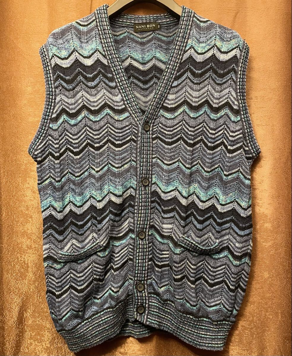 - MADE IN ITALY製 NANI BON 3Dニットベスト マルチカラー 50サイズ イタリア製 ニットベスト 総柄 3Dニット ヨーロッパ古着