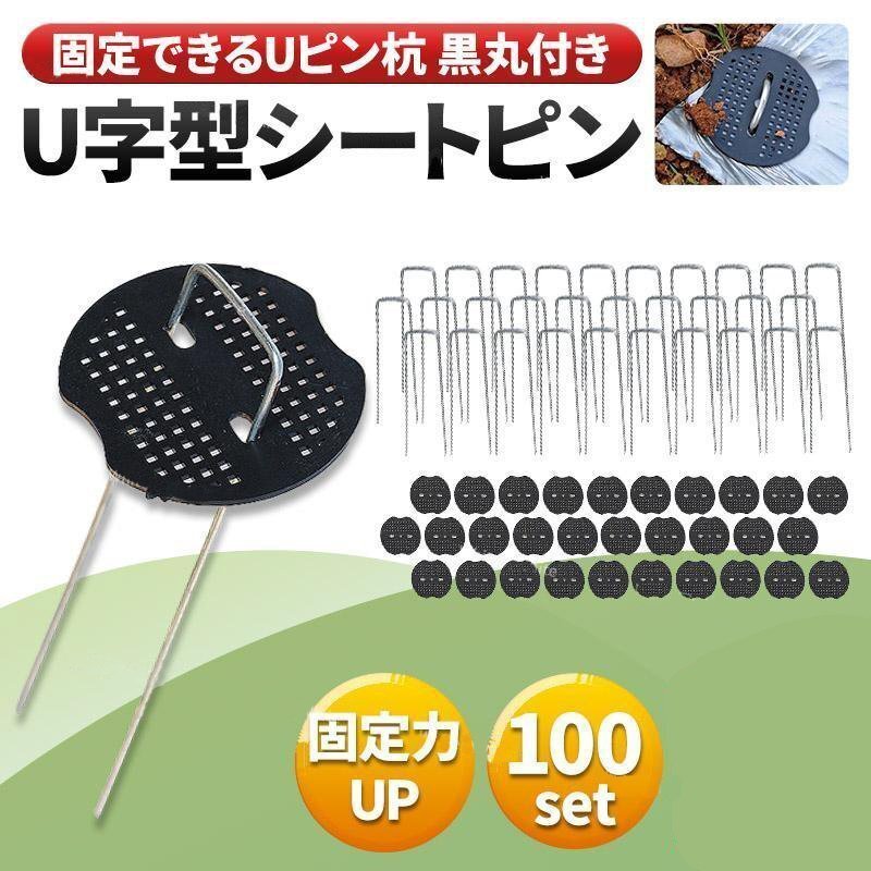 - 押さえピン 人工芝 防草シート 黒丸付 Uピン杭 100本 マルチシート 固定 園芸