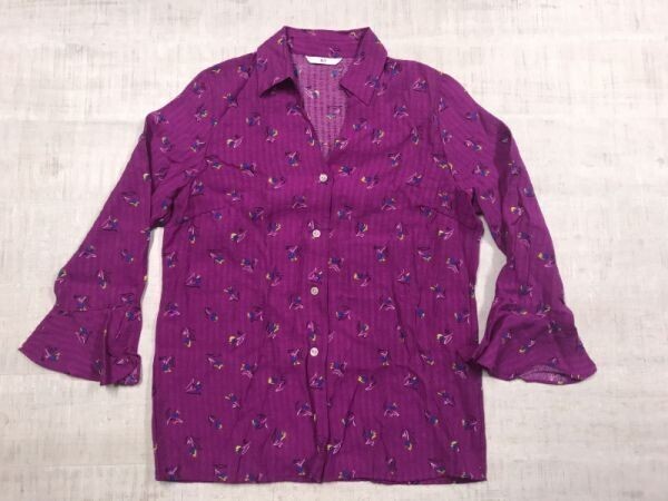 - スライ SLY ボヘミアン フラワー 花柄 エスニック ヒッピー スキッパー 袖フレア 長袖 シャツ トップス レディース レーヨン混合 フリー 紫