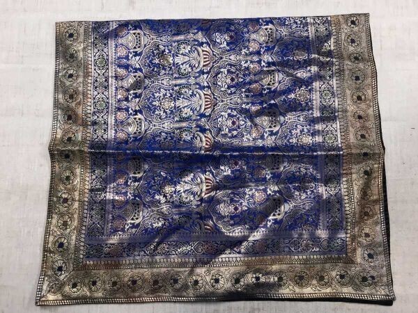 > レトロ インテリア 小物 装飾 民族エスニック オリエンタル 花柄 花瓶 アラベスク 光沢 裏地付き 長方形 大判 マルチ クロス 生地 布 青