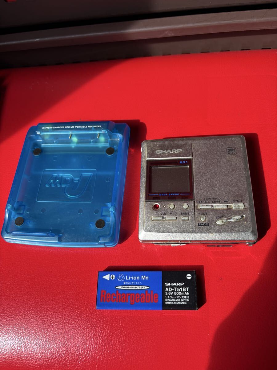 - SHARP シャープ ポータブルMDレコーダー MD-MT831-S シルバー 通電NG 充電器付き ジャンク扱い