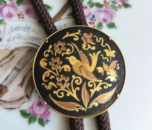 - スペイン トレド ダマスキナード 象嵌細工 チョーカー ループタイ 鳥 花柄 ヴィンテージ