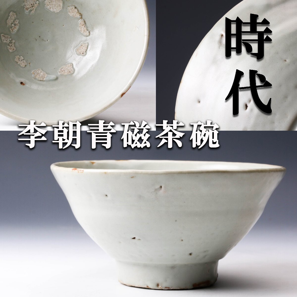 【佳香】時代 手に馴染む古の温もり 李朝青磁茶碗 茶道具