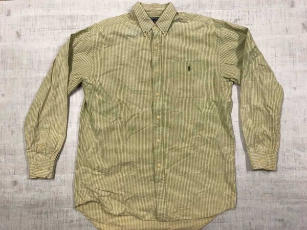 > ラルフローレン Ralph Lauren SPORT MAN オールド アメカジ 古着 チェック ボタンダウン 長袖シャツ メンズ コットン100% M カーキ
