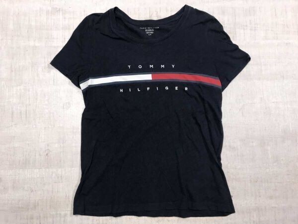 > トミーヒルフィガー TOMMY HILFIGER アメカジ トラッド 古着 ロゴ刺繍 プリント 半袖 Tシャツ レディース コットン100% S/P 紺