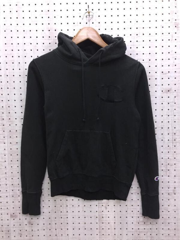 - E hyphen world gallery イーハイフンワールドギャラリー × チャンピオン Champion ビッグロゴ刺繍 スウェットパーカー レディース 黒