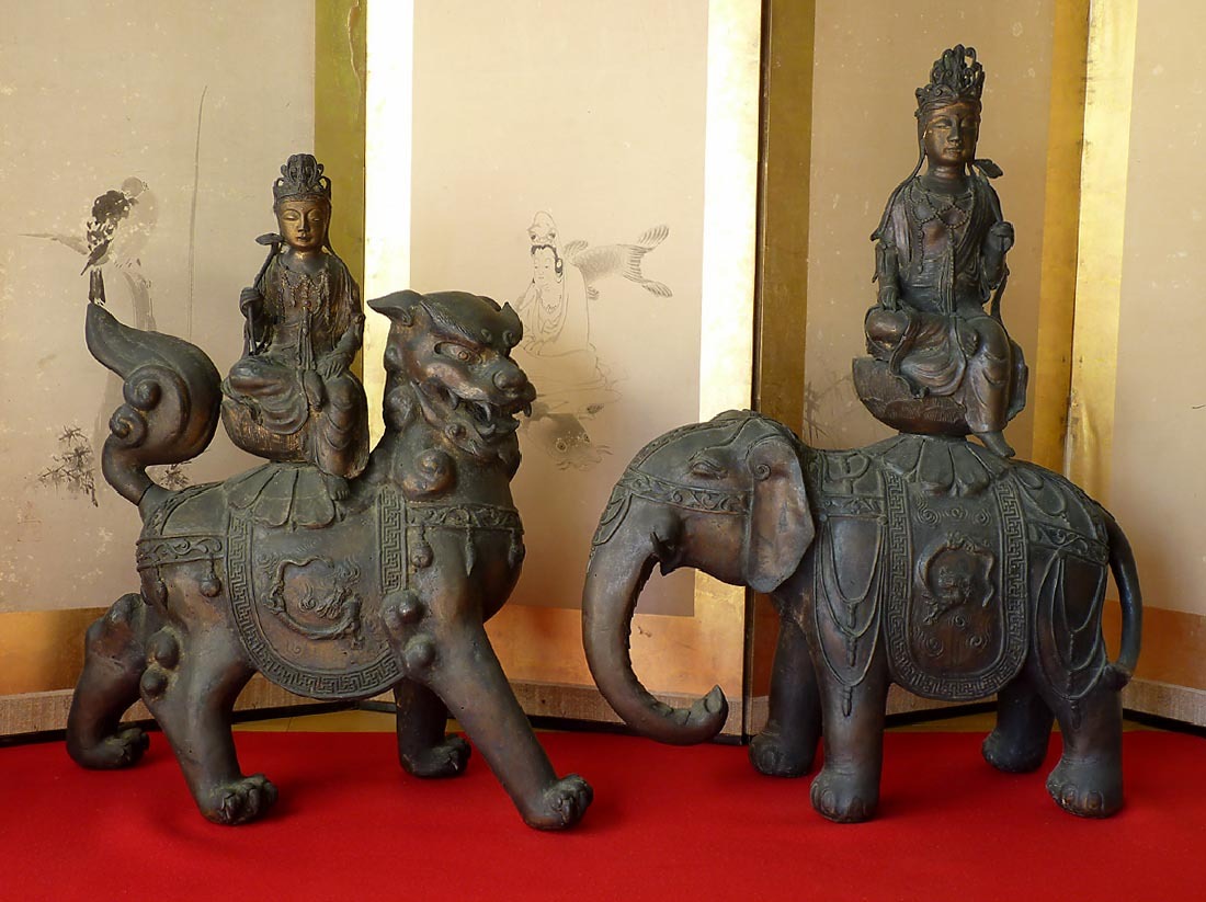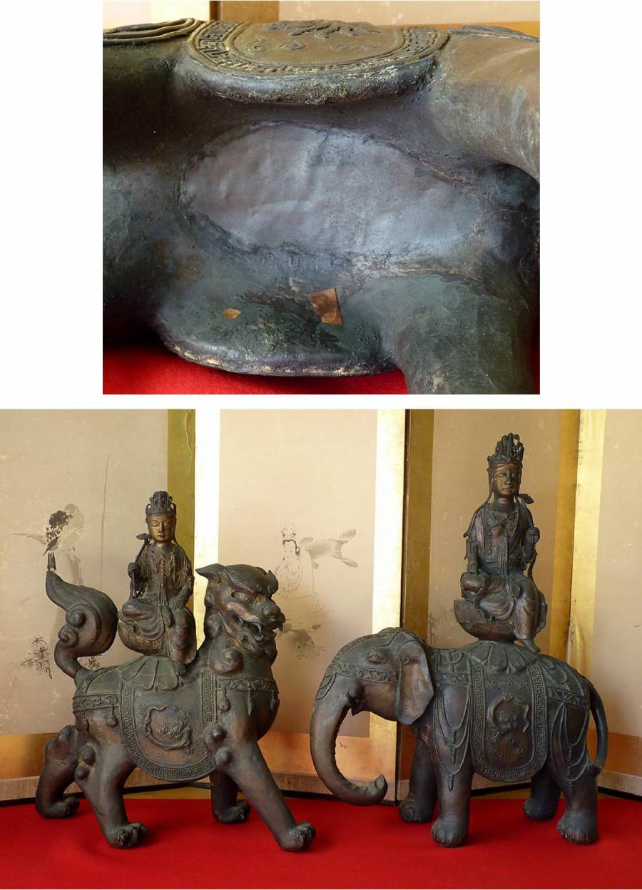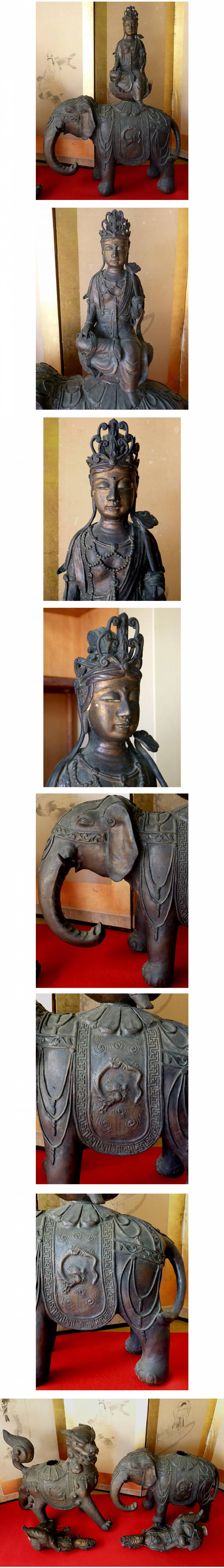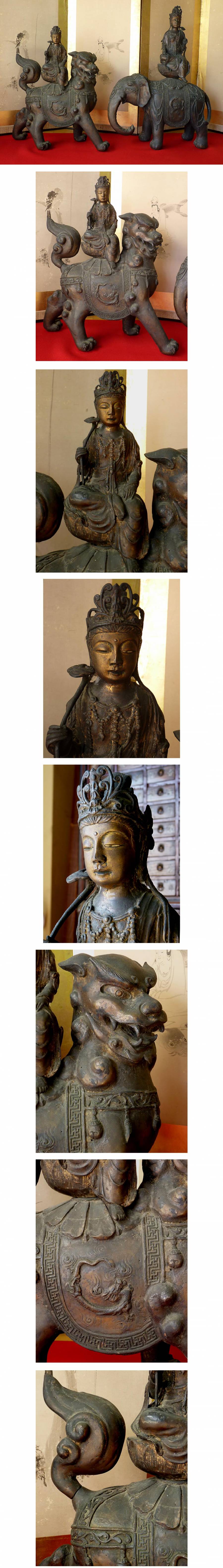 - 【夢たま】仏教美術!寺院収蔵 特大 唐物 明代 古銅 唐銅 鍍金 普賢菩薩文殊菩薩 最大高さ98㎝/中国古玩 仏像☆