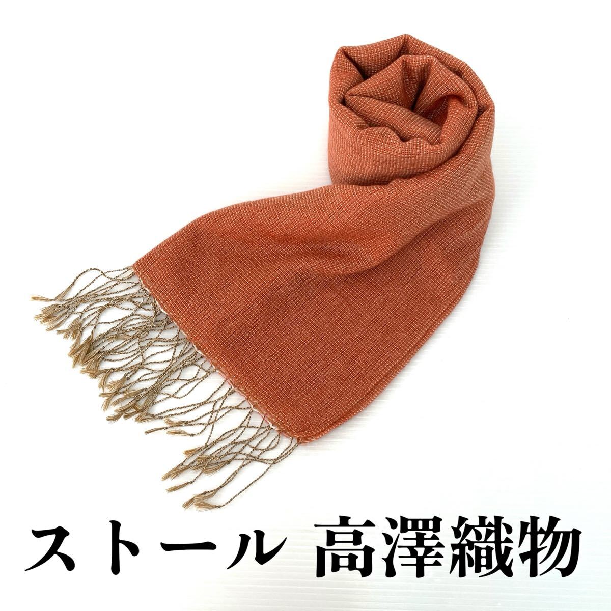 - 【ストール 高澤織物】未使用 カシミヤ? 秋冬 オレンジ系 金色系 スカーフ ショール 肩掛け 膝かけ 国産 日本製 防寒 #0263-777Z10