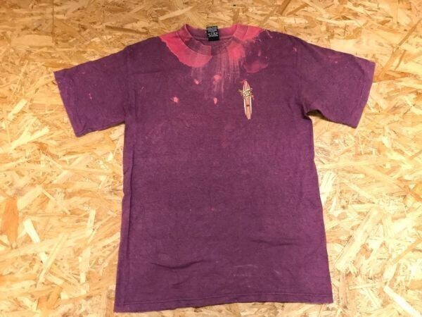 > H.L.MILLER GOLD ミラー 90年代 90s USA製 オールド サーフ HAWAII ハワイ ブリーチ バックプリント有 半袖Tシャツ M メンズ 紫