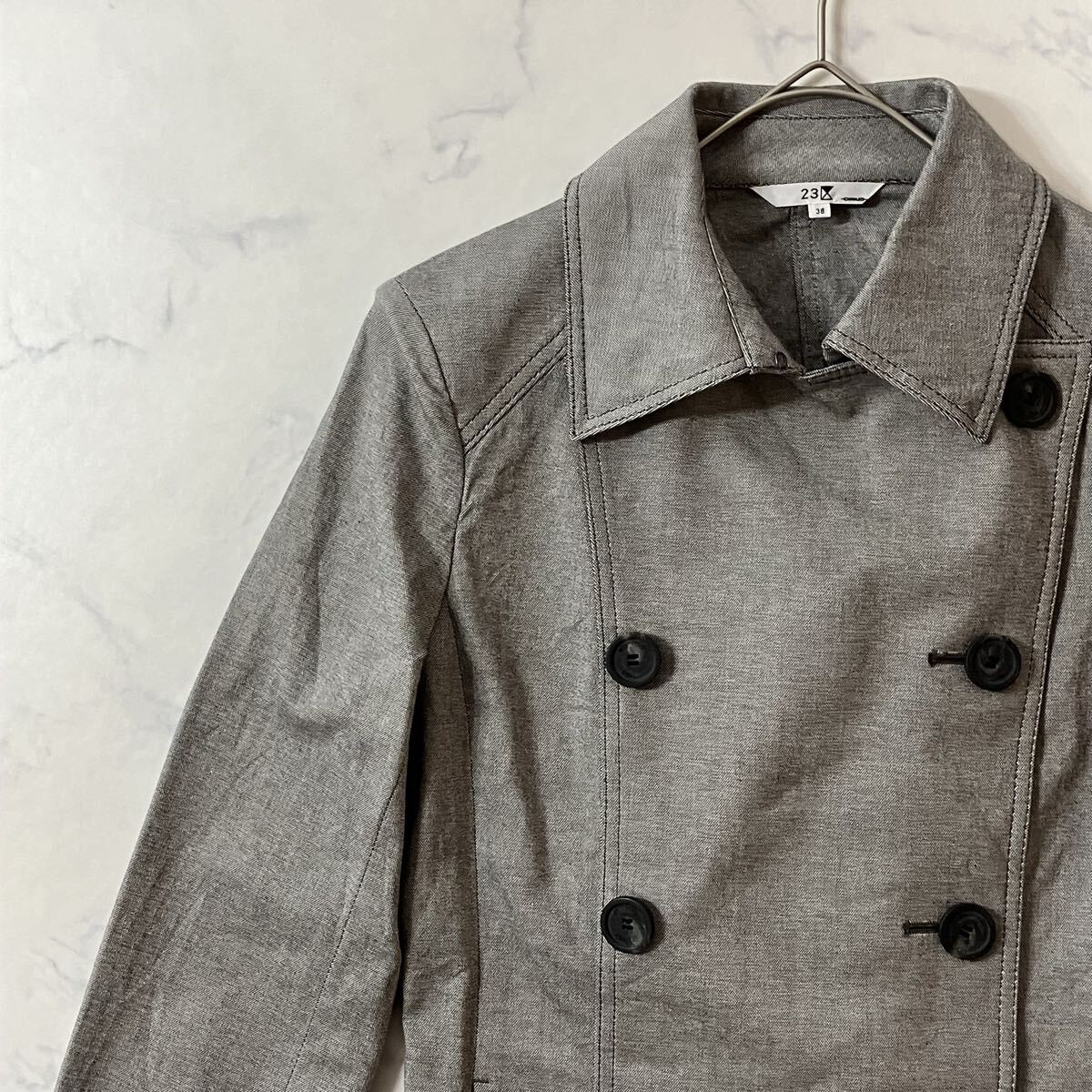 - 23区 ニジュウサンク 日本製 杢カラー ボタン ダブル ストレッチ ジャケット グレー 38